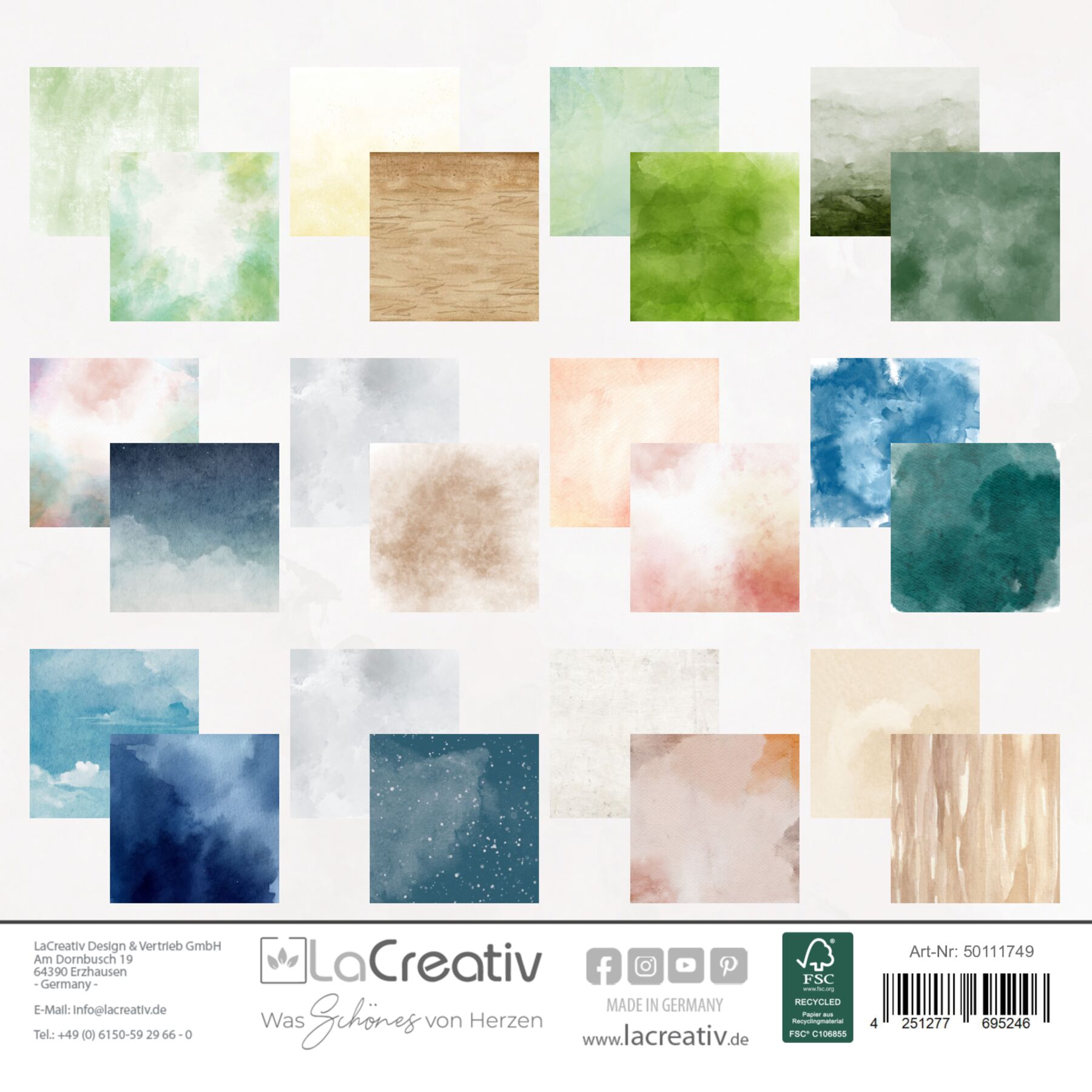 Das Motivpapier-Set „Sanfte Naturträume“ besticht durch seine harmonischen Aquarellverläufe und natürlichen Texturen in Grün-, Blau- und Erdtönen. Inspiriert von Holzmaserungen, Himmel, Wasser und Wald, bringt es Ruhe und Tiefe in jedes kreative Projekt. Ideal für Naturthemen, Karten, Journaling und Scrapbooking.