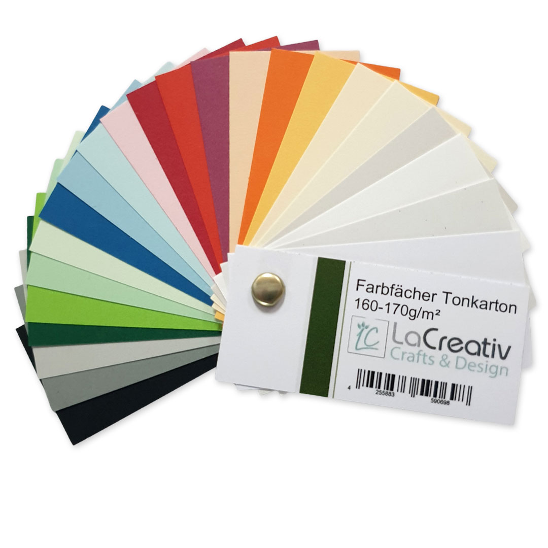 Farbfächer als Muster – Übersicht über unser Sortiment aus unseren glatten Tonkarton 160 - 170 g/m².