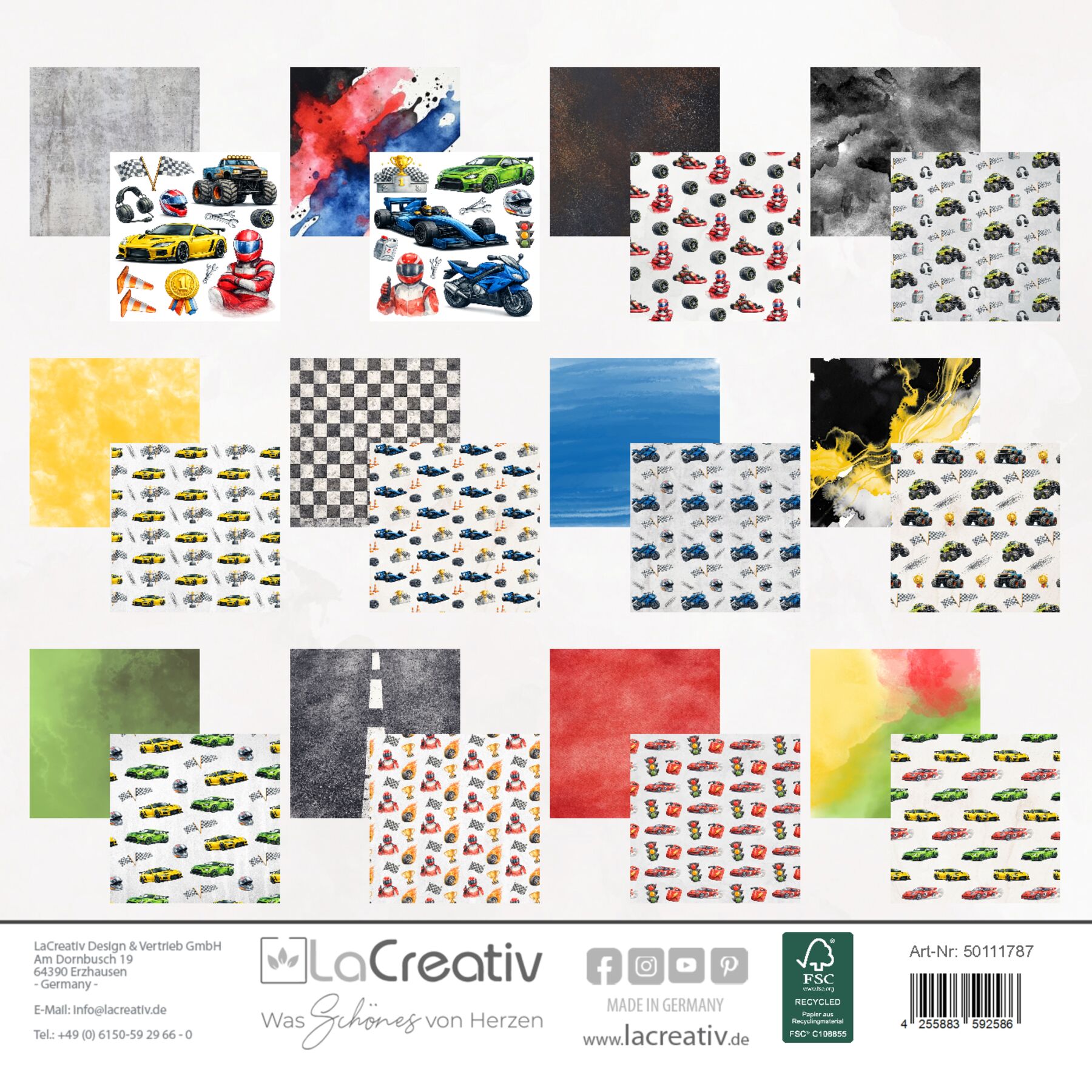 Mit „PS Power“ zieht pure Action in deine Bastelprojekte ein. Dynamische Motive mit schnellen Rennwagen, kraftvollen Monstertrucks, Helmen, Zielflaggen und Reifenspuren bringen echtes Rennstrecken-Feeling aufs Papier. Kräftige Farben, sportliche Details und markante Muster erinnern an den Nervenkitzel eines spannenden Rennens und lassen kleine und große Motorsportfans sofort auf Touren kommen.