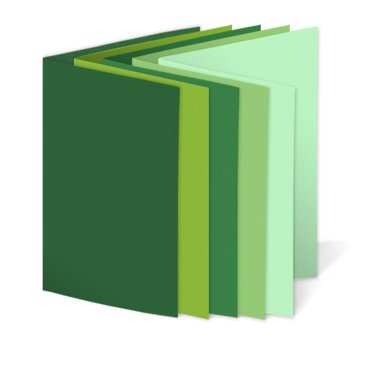 je 5 Doppelkarten in pastell-grün, pistazie, weihnachtsgrün, grasgrün, dunkelgrün