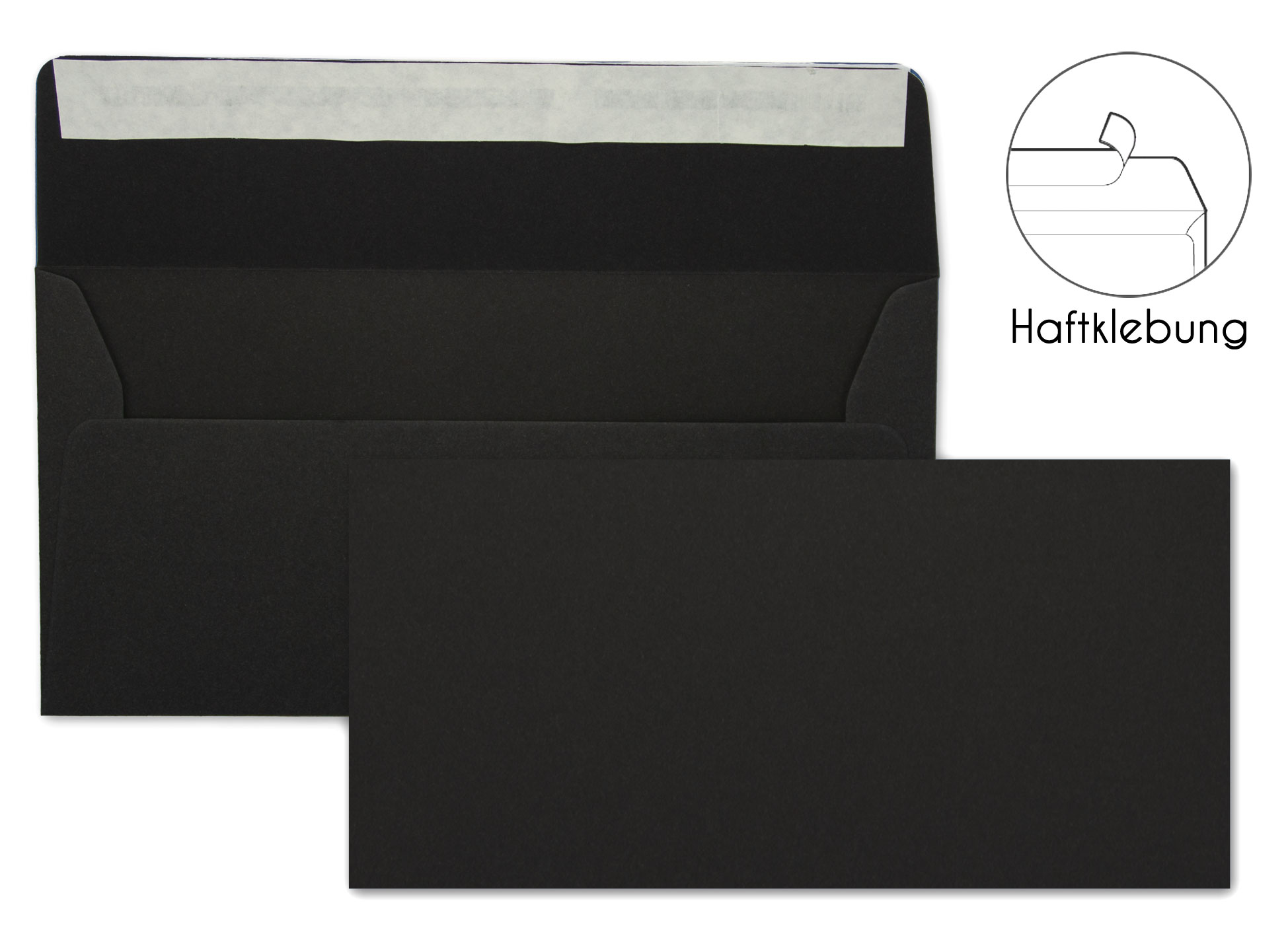 Briefumschlag und Kuvert DIN-Lang mit Haftklebung in schwarz