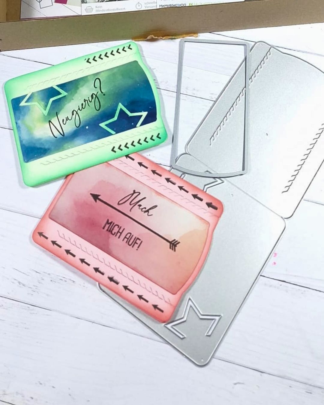 - Größe der Stanzen: Stanze 20,4x8cm Fertiger Umschlag 10,3x8cm Aufleger 9,7x4,8cm