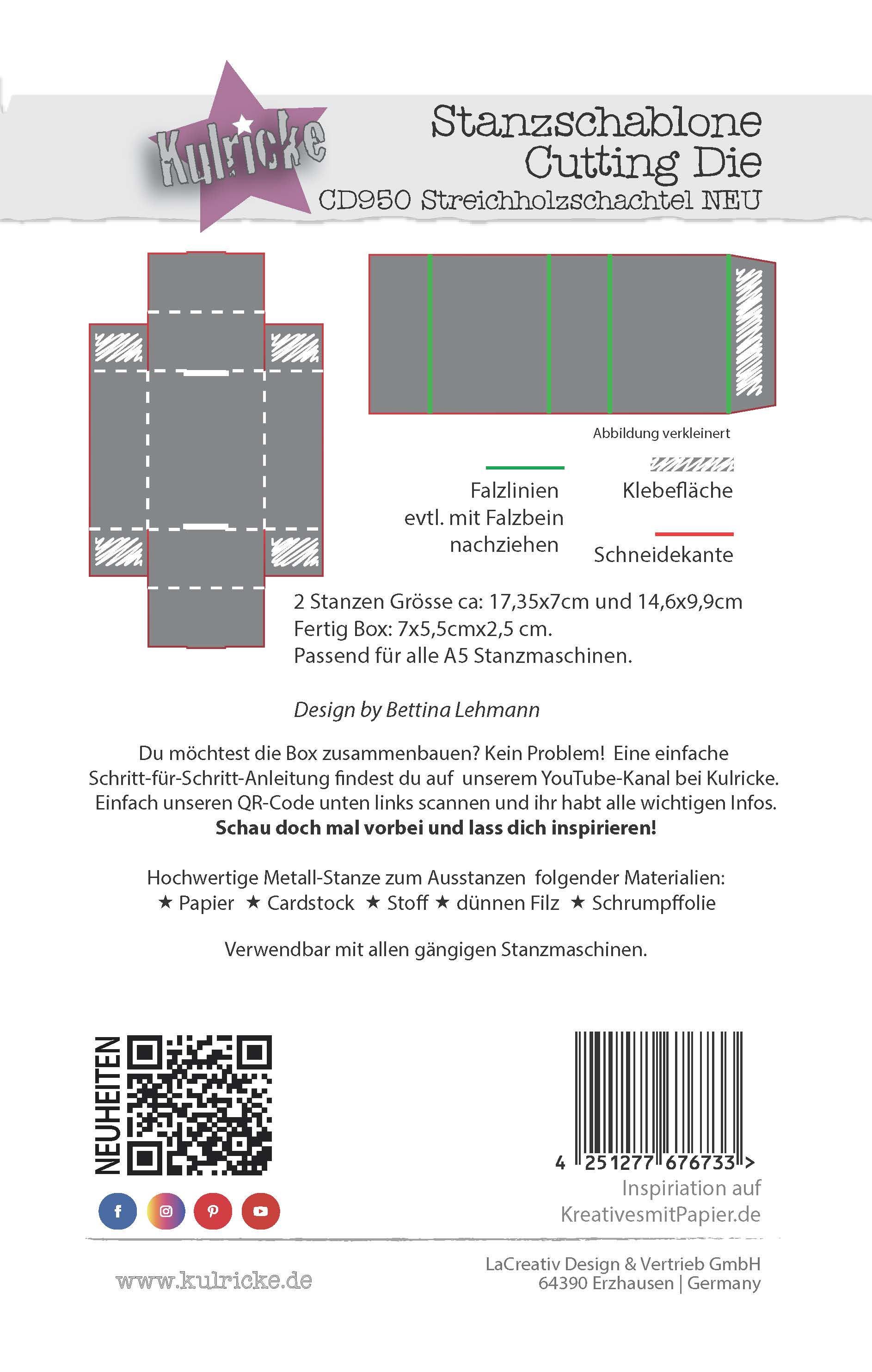 Kulricke Metall Stanzschablone Craft Die "Streichholz Box - Mittel"