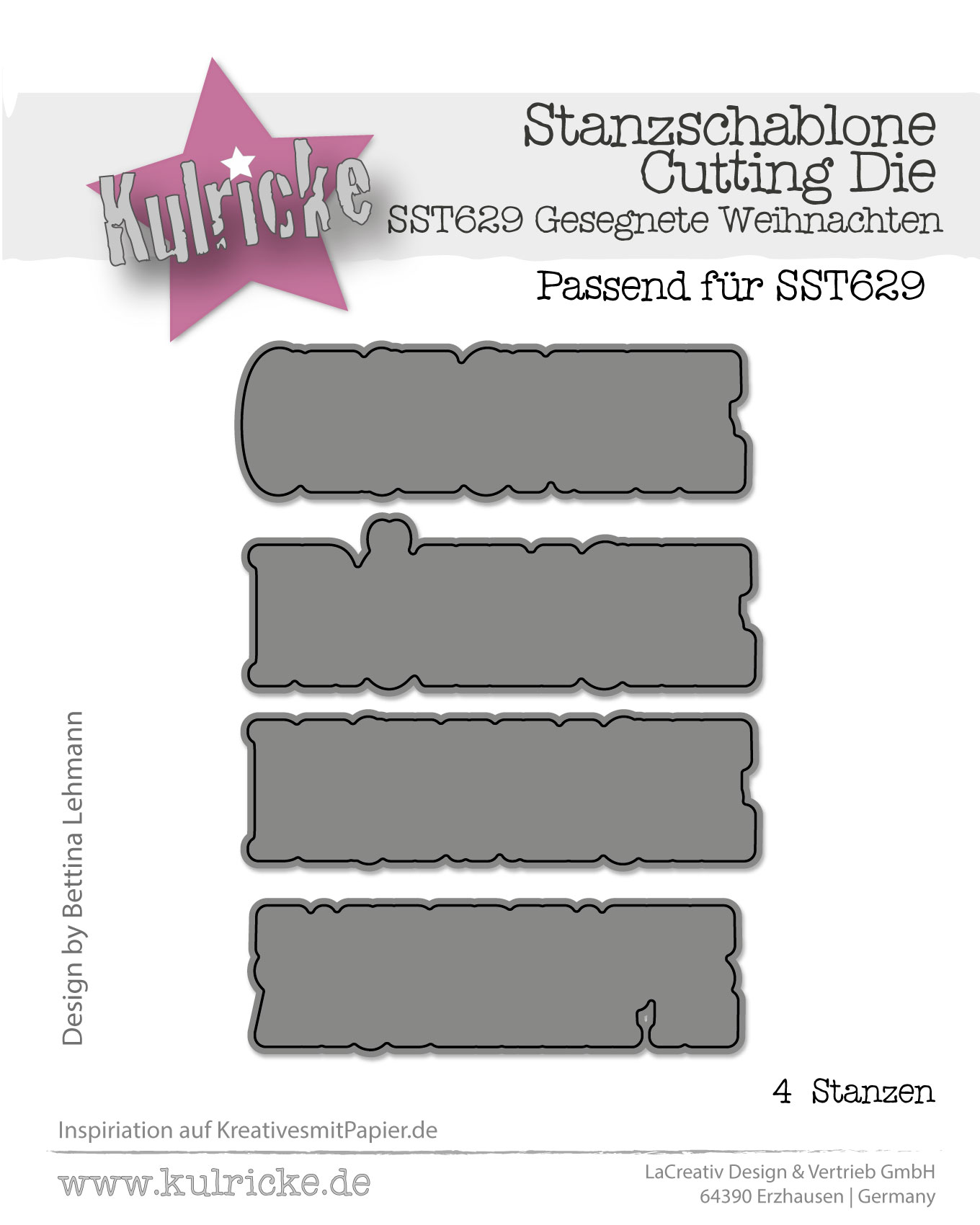 Mit der Stanzschablone SD629 Gesegnete Weihnachten schneidest Du die stilvollen Wort-Stempel aus dem Set SST629 Gesegnete Weihnachten sauber aus.